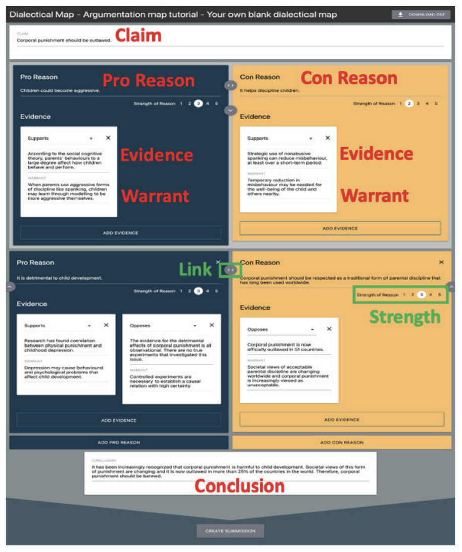 A Dialectical Map or DMap is a visualization of an argument. The DMap concept and tool was developed at Simon Fraser University in PhD research by Dr. Hui Niu (Niu, 2016) and has since been used in dozens of undergraduate and graduate courses at SFU, BCIT, and other postsecondary institutions.